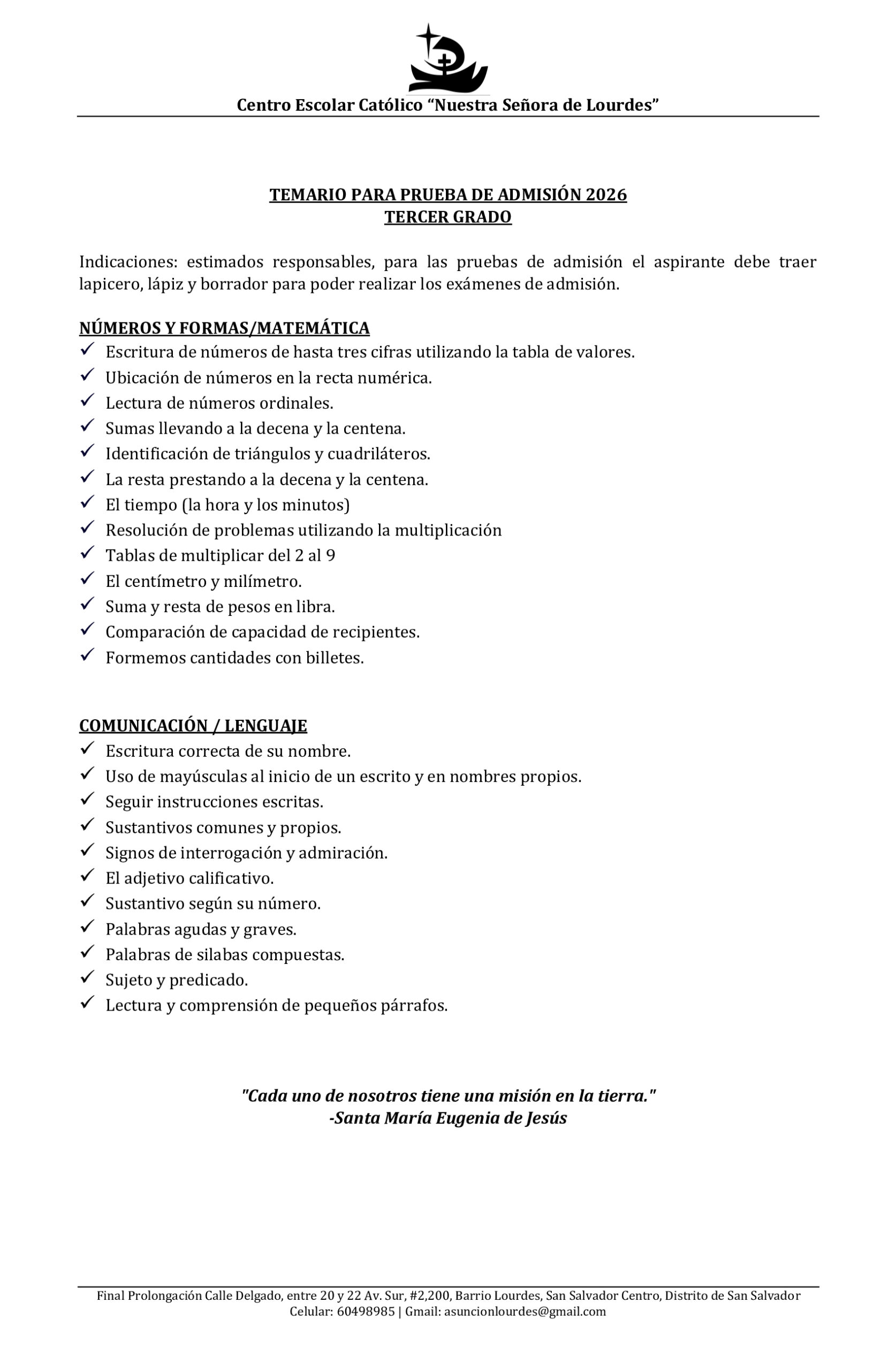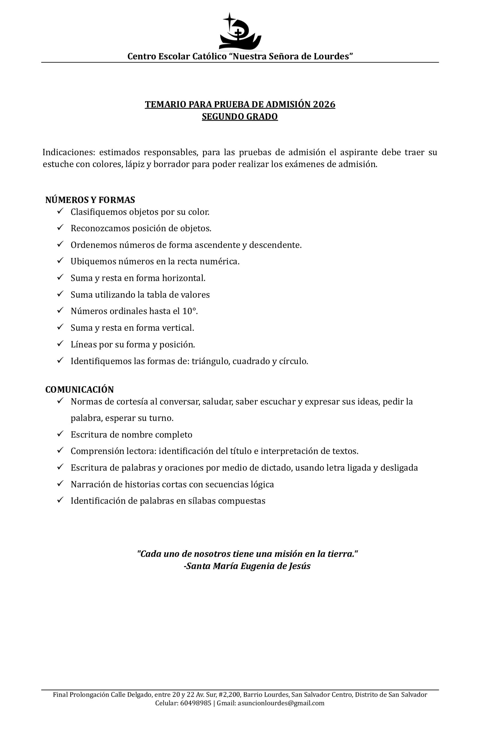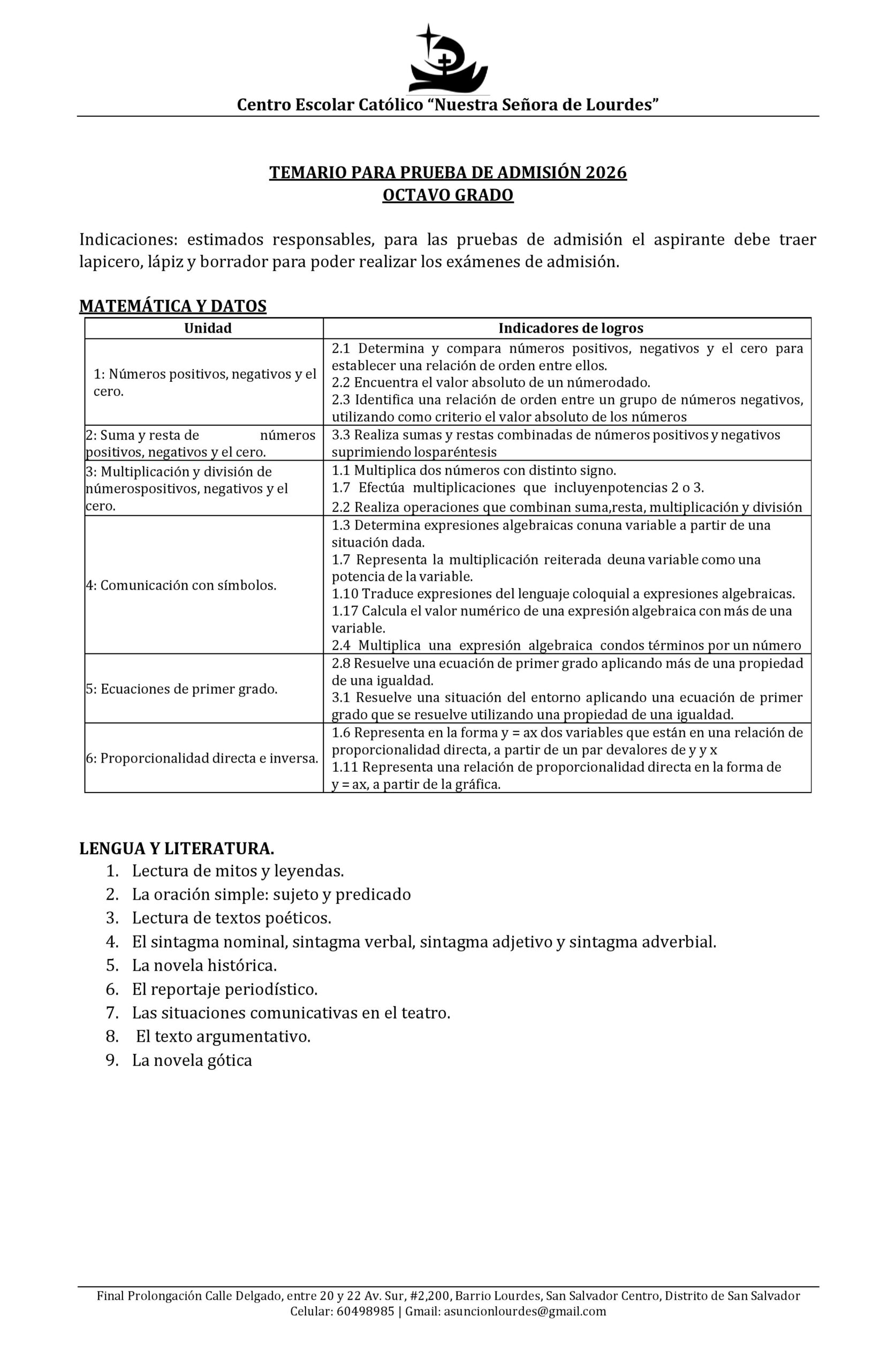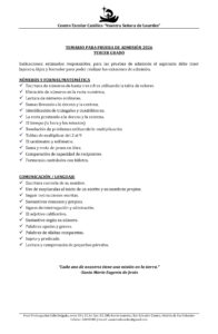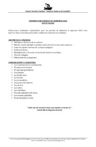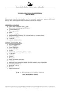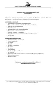 Estimadas familias, a continuación compartimos los temarios de estudios para los exámenes de admisión para el proceso de Nuevo Ingreso 2026.